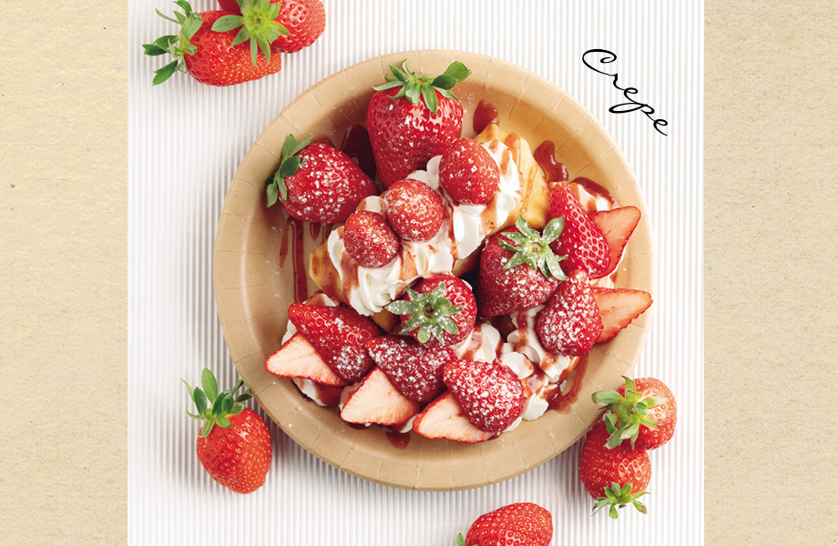 いちごの糖度を最大限にするため、あえて日照時間が短い山間で生産を始めたという店主の渡瀬さん。看板メニューは、減農薬や肥料にこだわった糖度たっぷりの「きらぴ香」と、三重県生まれの「かおり野」を使った3種類のクレープ。なかでも、「もう包めない 10倍クレープ」はぜひ食してほしい1品。